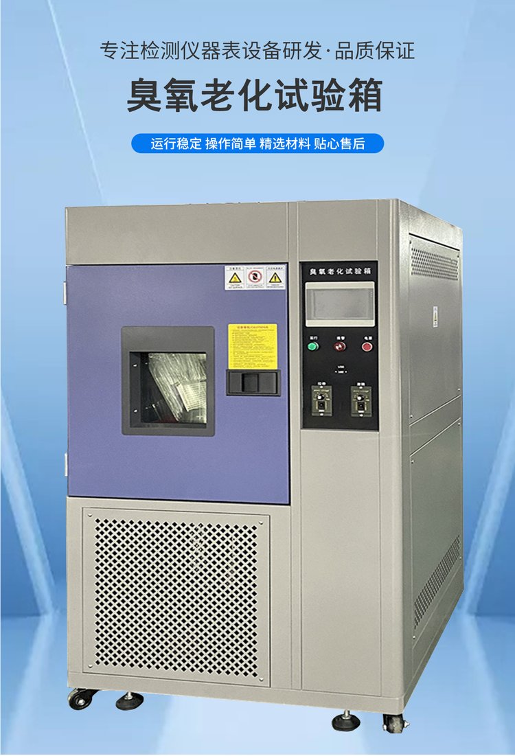 臭氧在大气中的含量很少却是橡胶龟裂的主要因素,臭氧老化箱模拟和强化大气中的臭氧条件,研究臭氧对橡胶的作用规律,快速鉴定和评价橡胶抗臭氧老化性能与抗臭氧剂防护效能的方法,进而采取有效的防老化措施,以提高橡胶制品的使用寿命,