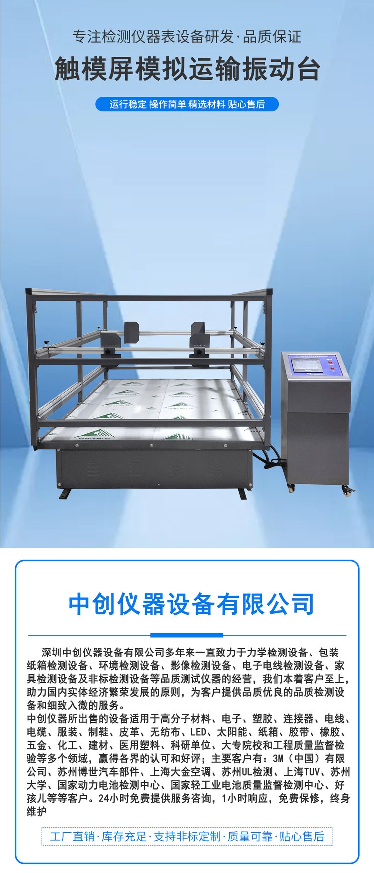 模拟运输振动台是对特定负荷的各类物品在公路汽车运输过程中承受实际路况能力的考核,以在实验室获取实际工况对于物品的影响,从而对物品及物品的包装给予评定或确认的依据。
